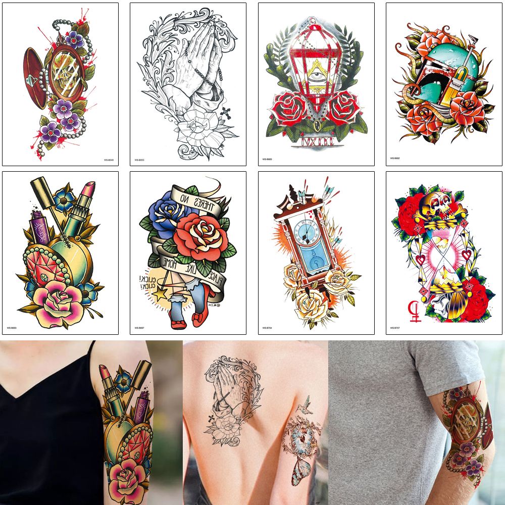 Women Men Unisex Temporary Tattoo Sticker Violoncello Time Sand Clock Helmet Flower Mushroom Decal Punk Style Waterproof Body Art Diy Tattoo From Homimly 0 89 Dhgate Com